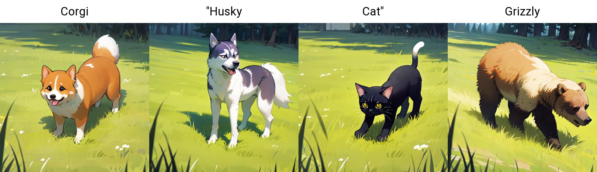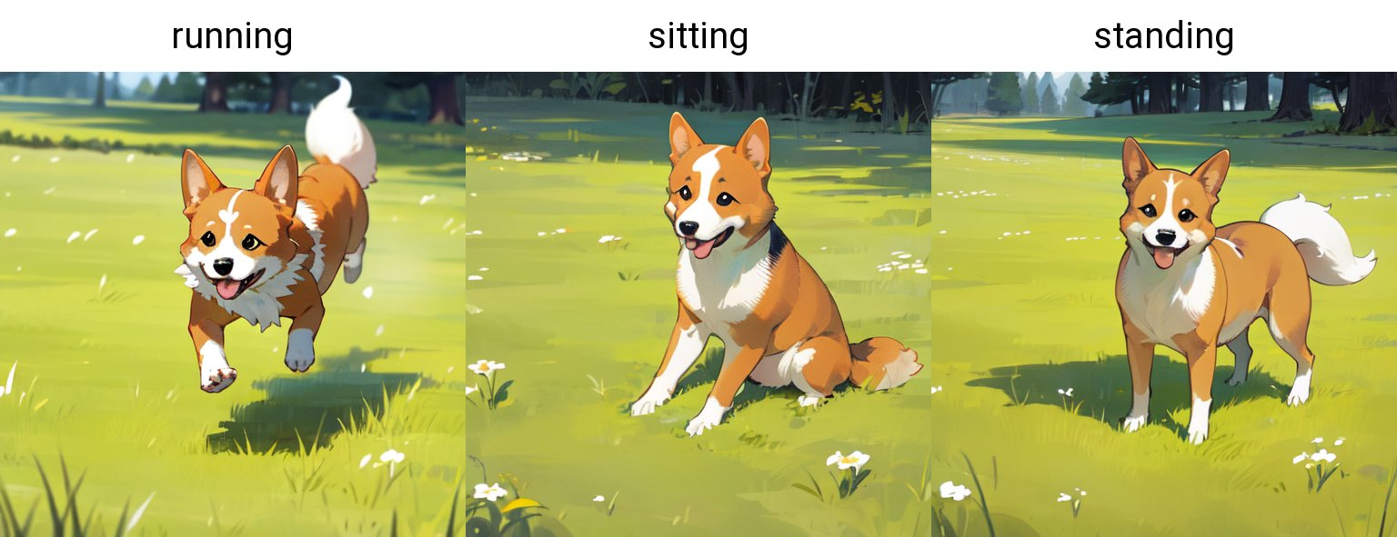 예를 들어 프롬프트 no humans, outdoor, grass, a dog, Welsh Corgi, running, 가 있고 X type: Prompt S/R, X values: running, sitting, standing 으로 입력하면 running을 찾아서 다음 단어로 바꾸는 행동을 반복한다. 지정된 범위가 없는 여러 작업을 할 때 편리하게 쓸 수 있다.