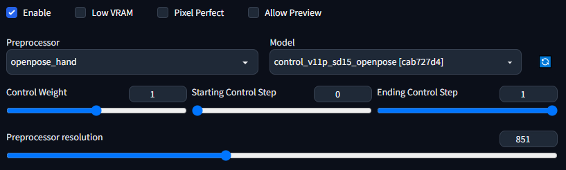 Preprocessor 풀다운에서 openpose_hand 선택