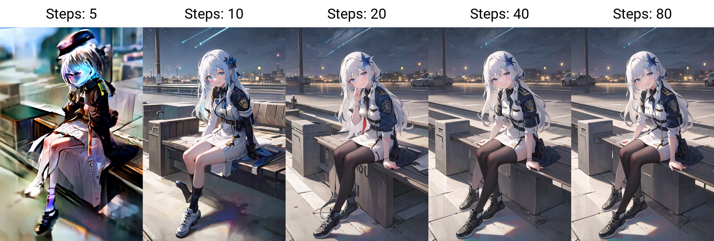많은 샘플링 스텝을 사용하여 이미지를 생성하는 것은 더 높은 처리 성능과 VRAM이 필요할 수도 있으며, 이는 시스템의 그래픽 카드(GPU) 사양에 직접적으로 연결됩니다. 일정한 한계에서 이미지에 추가되는 세부 정보의 양이 정점에 도달하며, 이 값 이상의 추가 샘플링 스텝은 오히려 이미지 품질을 저하시킬 수 있습니다.