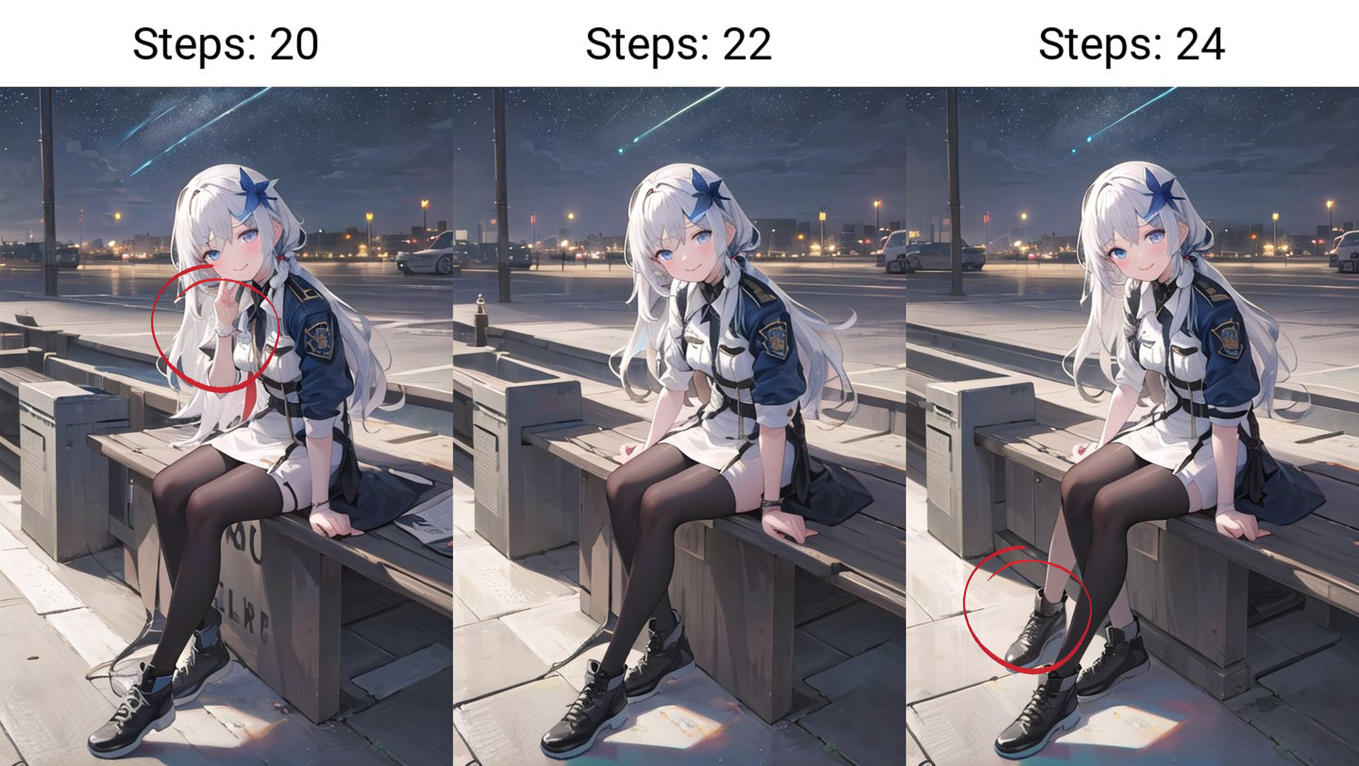 이번 글에서는 샘플링 스텝 20의 포즈가 마음에 들지 않았기 때문에 스텝 수를 변경해 적절한 베리에이션을 찾아보고, 업스케일을 하면서 Denoising strength에 대해 알아보겠습니다.